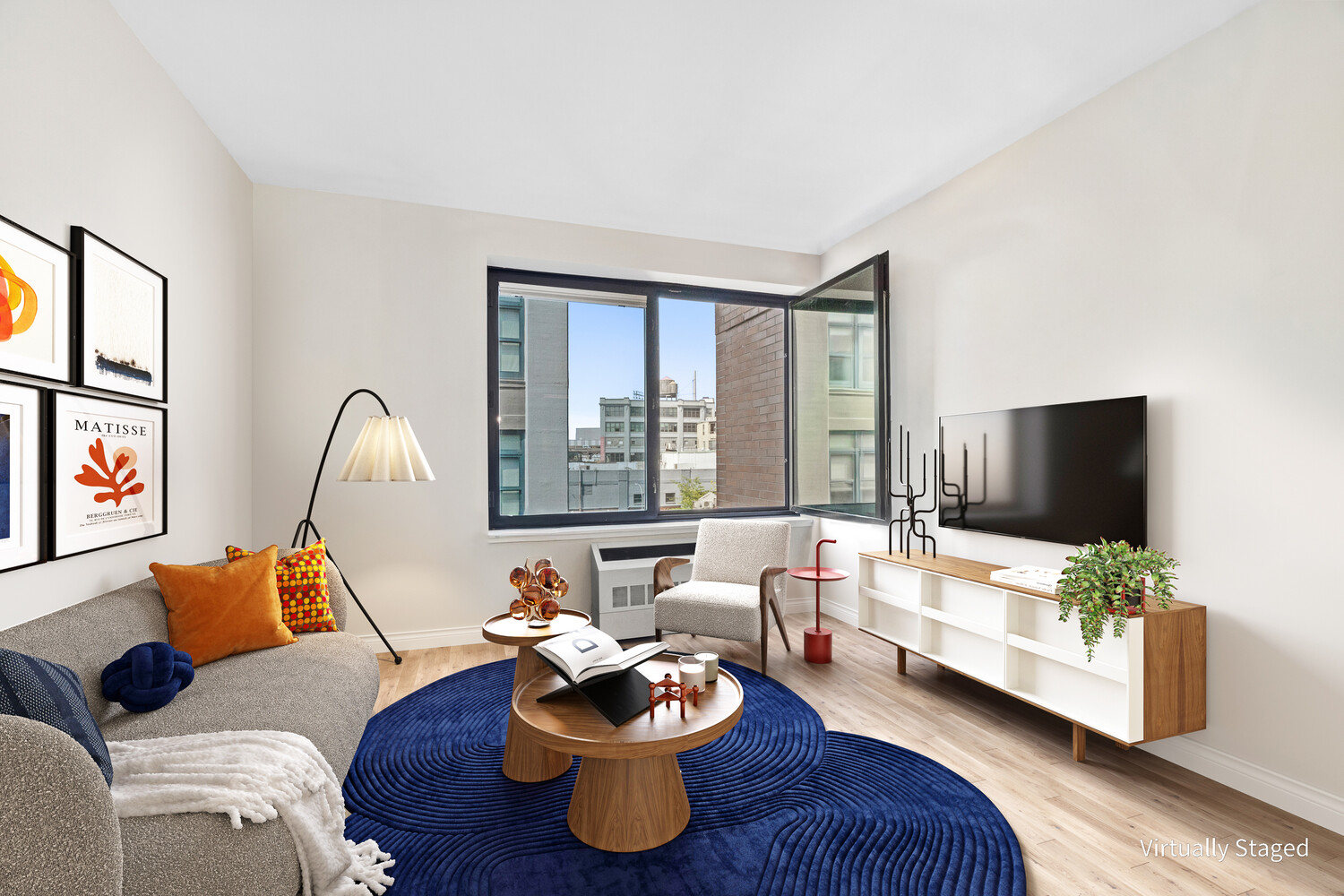Welcome to your bright, quiet sanctuary in one of LIC's most desirable full-service condominiums. This beautifully designed 1-bedroom plus flex room residence features over 9-foot ceilings and a thoughtful layout and abundant storage space throughout. Warm, 5-inch wide plank white oak flooring flows seamlessly, while the flexible configuration makes this home perfect for comfortable living or as a smart investment opportunity.
