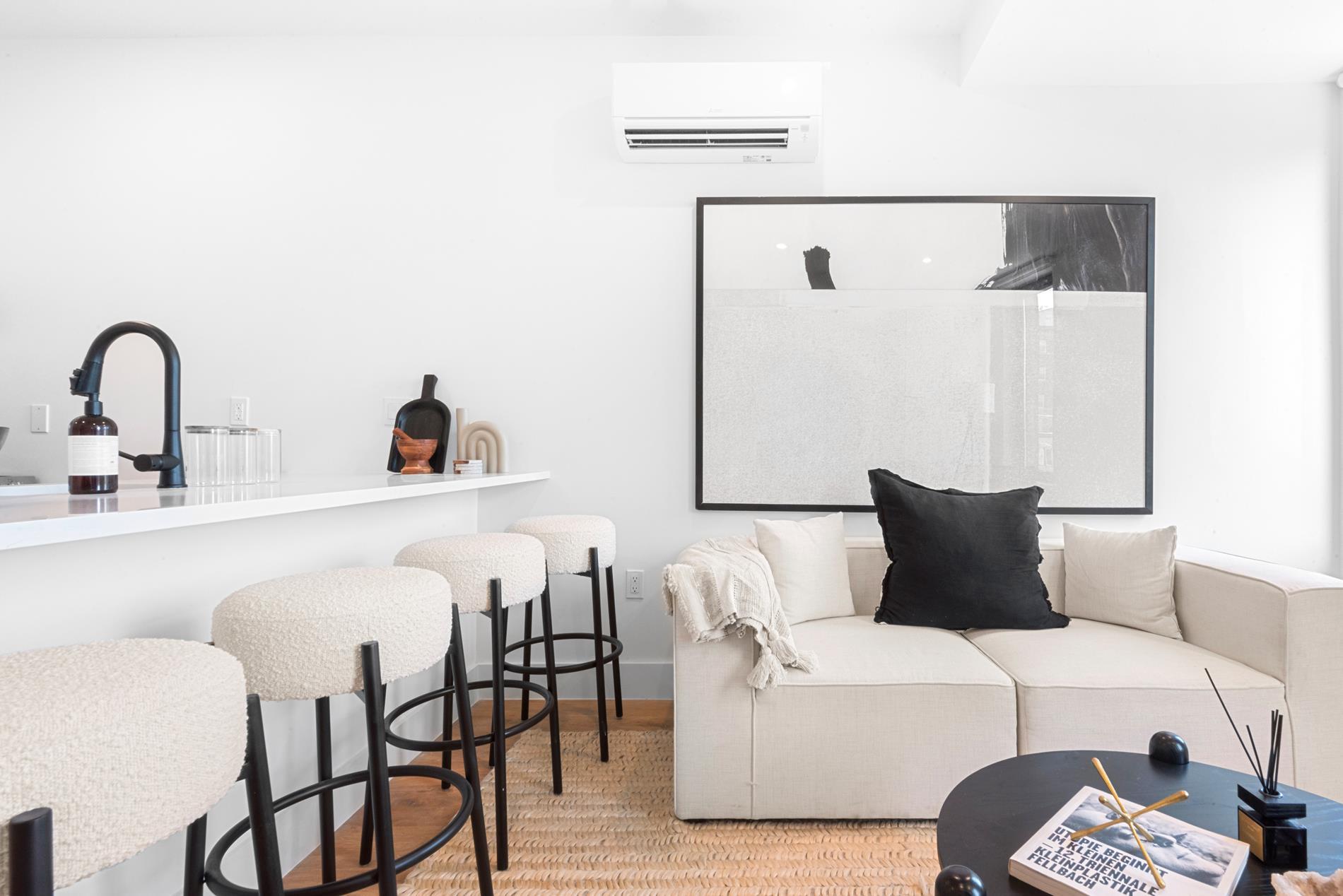 The striking brick exterior facade with its black metal framing is an inviting entry to the well-crafted residences inside. Choose from studio and one-bedroom units, intelligently constructed with premium Aquasense waterproof European oak-style flooring throughout and expansive black framed European-style tilt-and-turn oversized windows that fully illuminate interiors with plenty of natural light. Select apartments feature private terraces, adding a welcome outdoor extension to your living space.