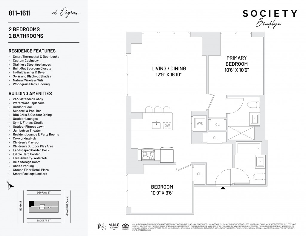 Welcome to Society Brooklyn! Modern Elegance with Iconic Views on Brooklyn’s newest Waterfront Esplanade!Discover a new level of luxury at Society Brooklyn, where urban sophistication meets modern comfort along Brooklyn’s newest waterfront esplanade. Nestled at the intersection of Carroll Gardens and Park Slope, our residences offer an unparalleled lifestyle designed for those who crave both style and substance.Our thoughtfully crafted residences blend sleek, modern finishes with warm, livable design, perfecting the balance between elevated aesthetics and everyday functionality. Expansive windows flood each home with natural light, while select units offer breathtaking skyline and canal views that bring the beauty of Brooklyn right into your living room.Residences feature:• Spacious open concept layouts• Custom black oak kitchen with premium stainless-steel appliances • LG in-unit washer/dryer • Oversized windows and wide-plank flooring• Spacious Bathrooms with LED mirror light• Window roller shades: white 5% light filtering with blackout in bedrooms• Amazing ViewsSignature AmenitiesFitness & Wellness:Stay active in our expansive modern fitness center, including:• Cardio studio• Yoga & meditation studio• Training floor with a wide range of new Technogym strength and cardio equipmentDitch the private gym membership. We’ve got you covered for any workout need.Co-Working Hub:• Multiple private offices available 24/7 for residents• Designed to facilitate a comfortable and convenient work-from-home without the need to be in your homeUnwind or connect in multiple resident lounges, designed for both social gatherings and quiet relaxation.Our sprawling outdoor amenity deck is your warm-weather escape:• Resort-style pool with sundeck• Pool bar & fire pits• BBQ grills with al fresco dining setups• Outdoor yoga, fitness, and lounge zonesExperience modern elegance with iconic views• Rooftop terrace offering panoramic, 180-degree city views• Many units boast stunning skyline viewsDaily Convenience• Attended parking garage• Secure bike storage• Package room & concierge services• 24/7 Lobby ConciergeWaterfront Park & Esplanade• Access to an expansive waterfront park and esplanade with landscaped walking paths, seating areas, and stunning views • A vibrant gathering place with dining options, shops, and embracing the arts communityEqual Housing Opportunity.Photos, Videos, and/or 3D tours may reflect a similar unit rather than the specific listing.