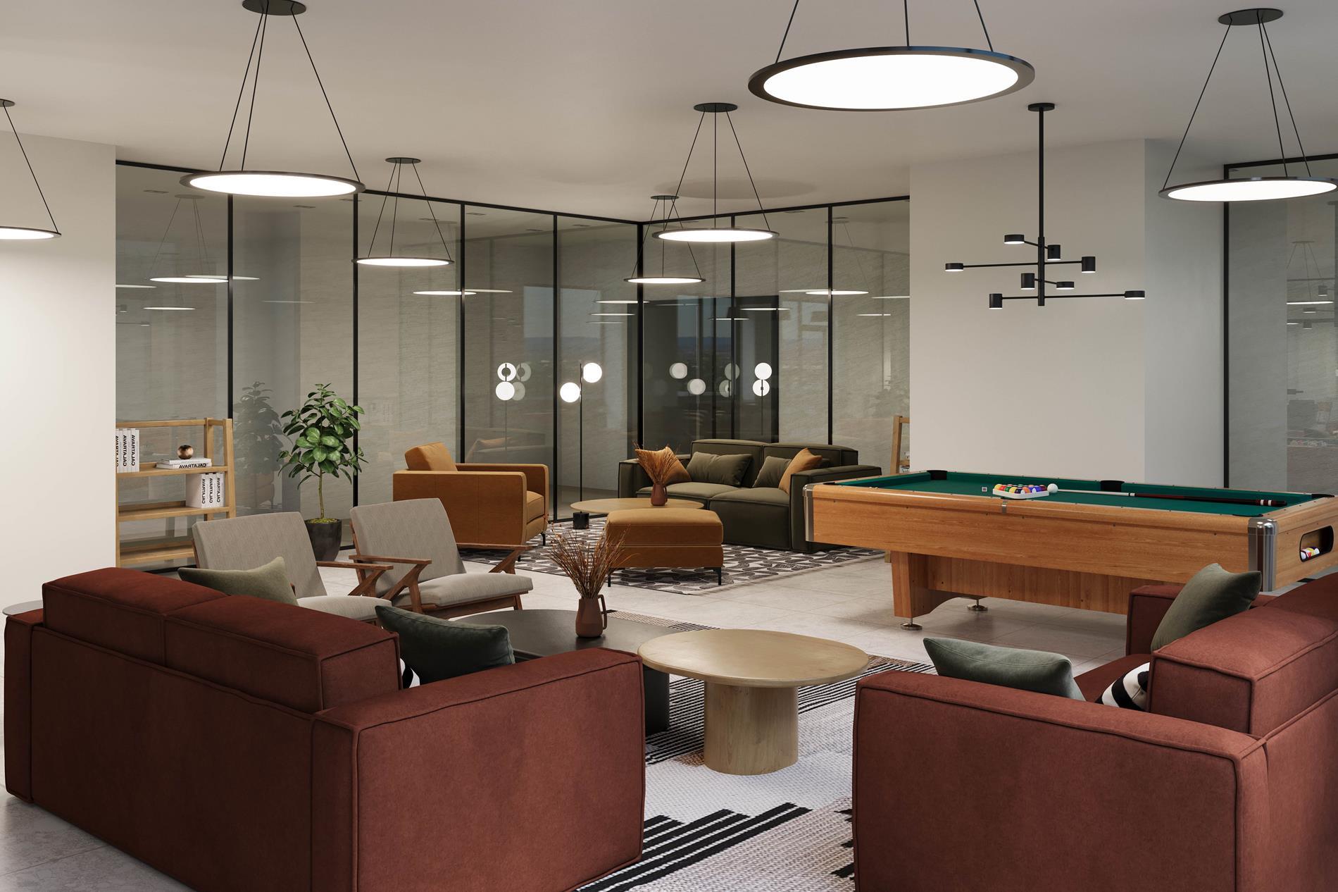 Indulge in the comfort of our indoor lounge, designed to be as inviting as its outside counterpart. This comfortably furnished interior space, complete with a kitchenette, is ideally suited to entertaining and enjoying moments with friends and neighbors.