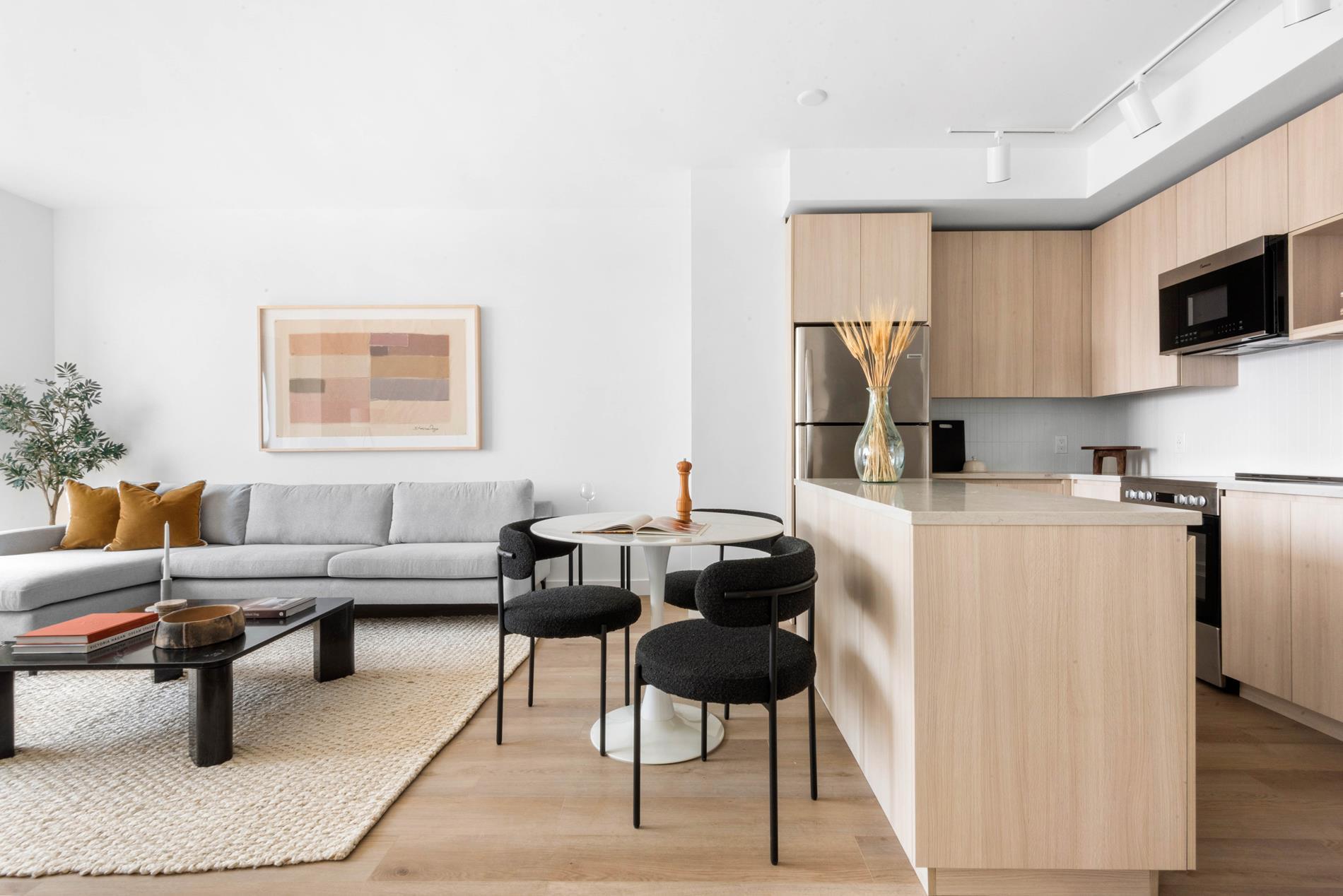 Thoughtfully developed to enhance residents' well-being, each apartment is a tranquil respite from the bustling rhythms of urban life. These airy residences are intelligently constructed to optimize natural light, with ample windows that allow for plenty of light and beautifully framed views. You'll find a welcome serenity envelops you here, graced with a modern and thoughtful aesthetic fully ready for you to make your own.