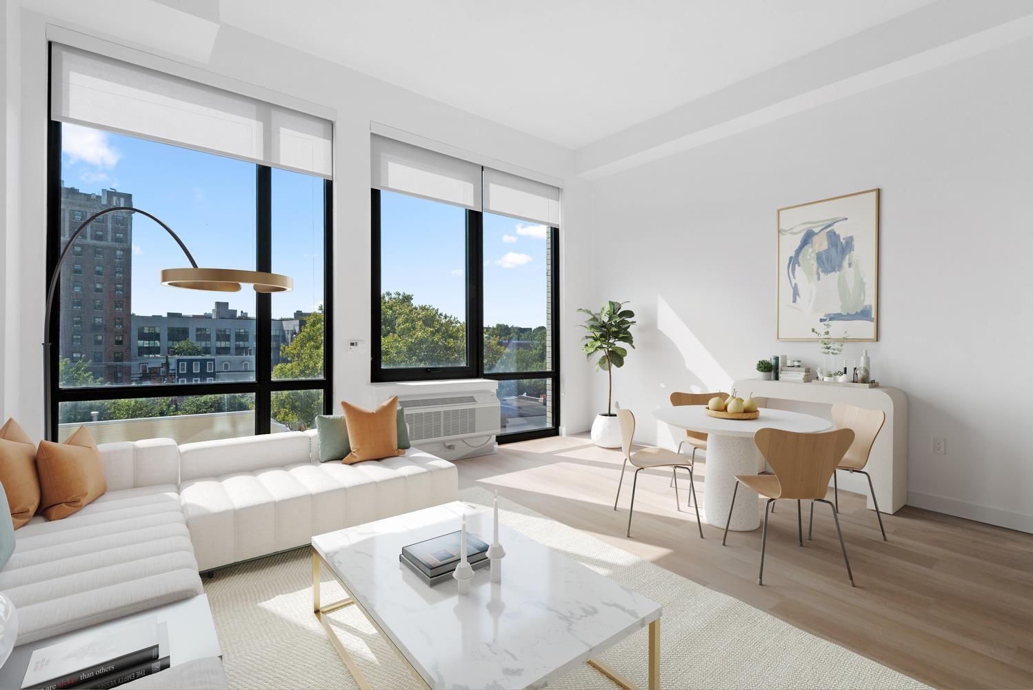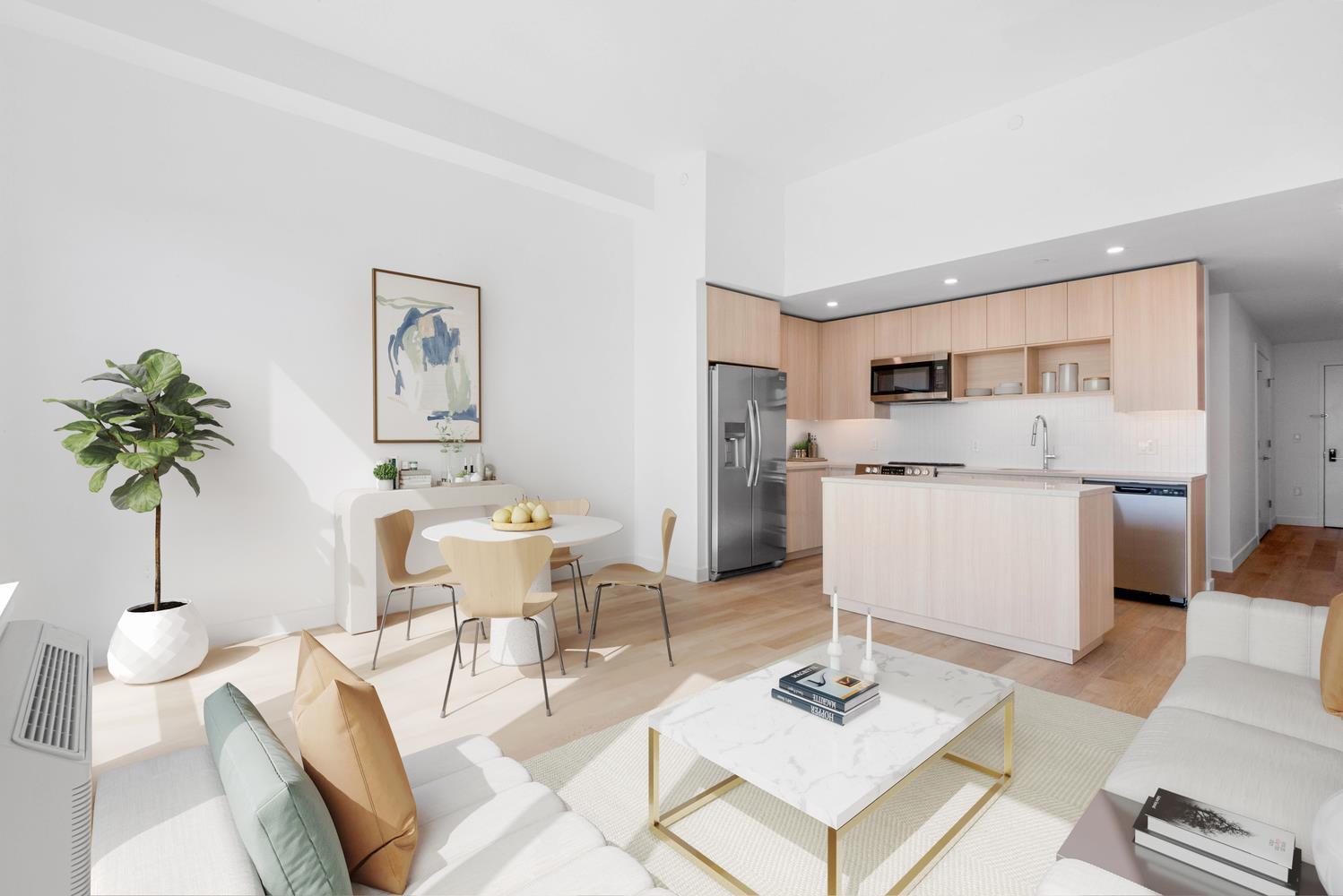 Thoughtfully developed to enhance residents' well-being, each apartment is a tranquil respite from the bustling rhythms of urban life. These airy residences are intelligently constructed to optimize natural light, with ample windows that allow for plenty of light and beautifully framed views. You'll find a welcome serenity envelops you here, graced with a modern and thoughtful aesthetic fully ready for you to make your own.